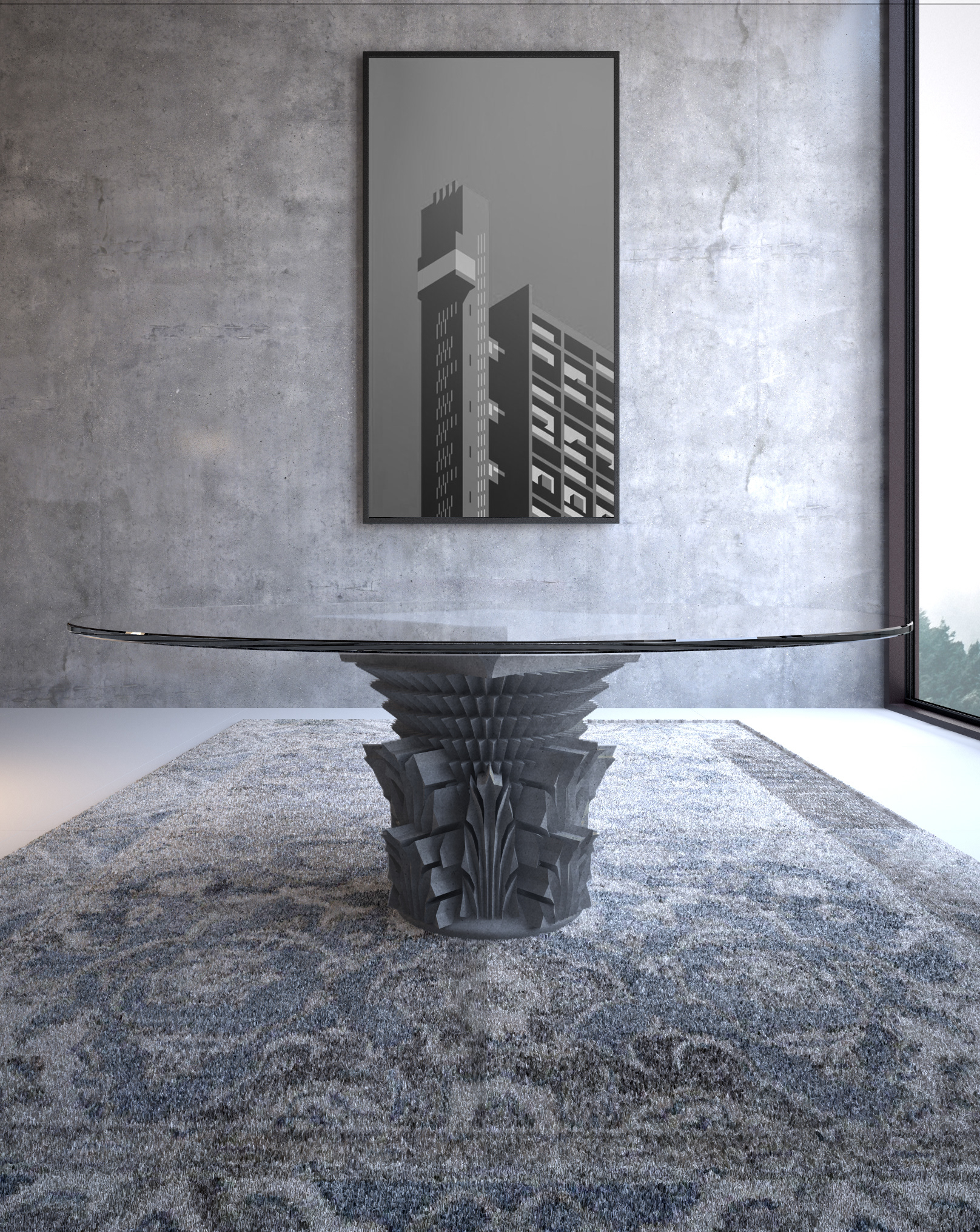 SYNTHESIS 3D with EDG NYC Finished furniture pieces. From start to finish. Modeling, Casting, Renderings, photographs produced using a large scale 3D Printer.